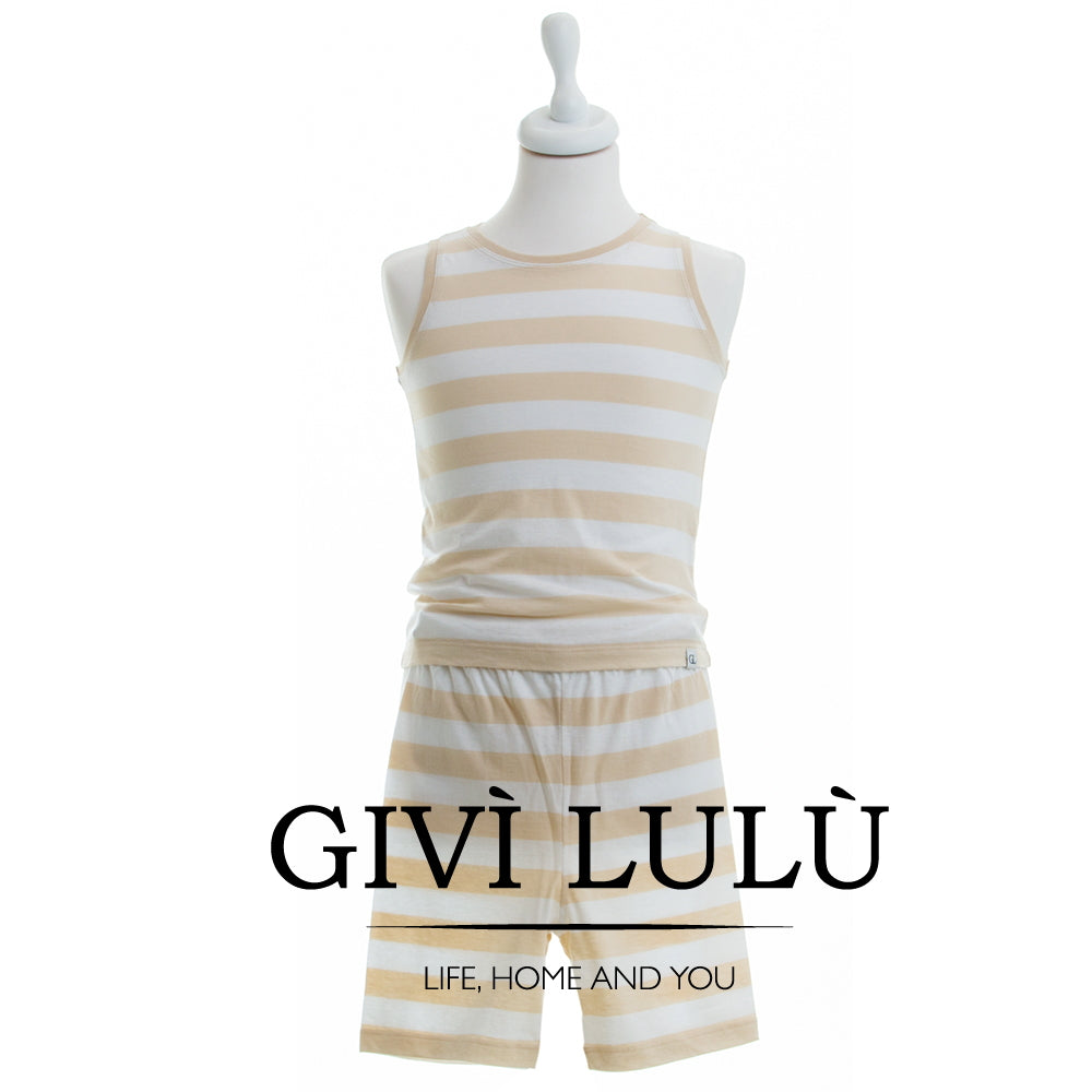 Un pigiama da bambino in stile classico a righe. Perfetto per i mesi più caldi con manica corta e pantaloncini. Morbido e traspirante, ideale per garantire comfort durante la notte.